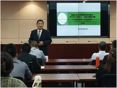 2024年4月12日,59599aa美高梅司、甘肃雍合堂药业有限公司在兰州高新区科技孵化大厦三楼联合举办现代企业管理培训,主讲嘉宾为甘肃省国有资产管理研究会党支部书记兼常务副会长石守君,参会人员共计30多人。